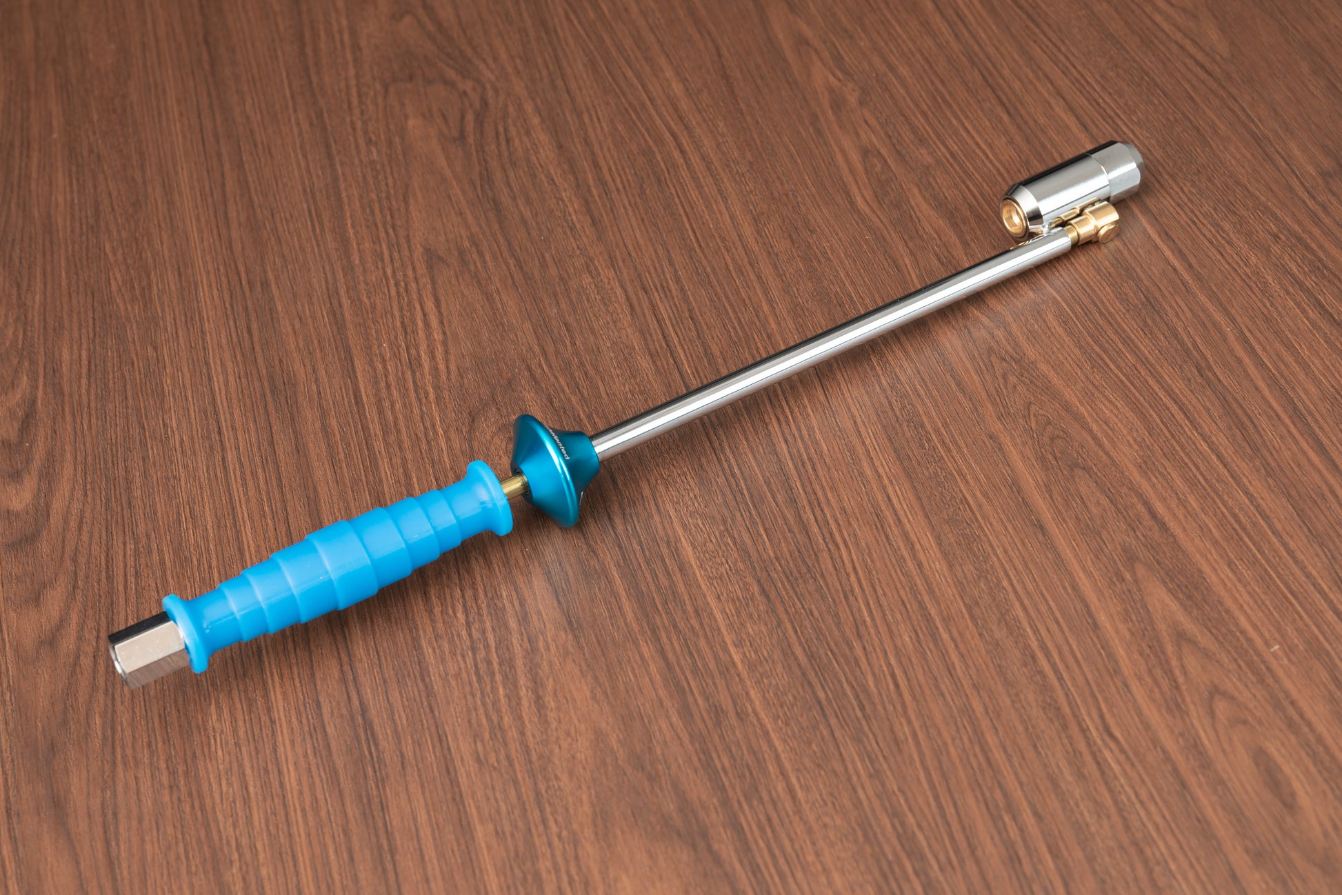 This tool has a 1/4" Female NPT thread, and we have an adapter to make it fit on the Milwaukee M18 Inflator.