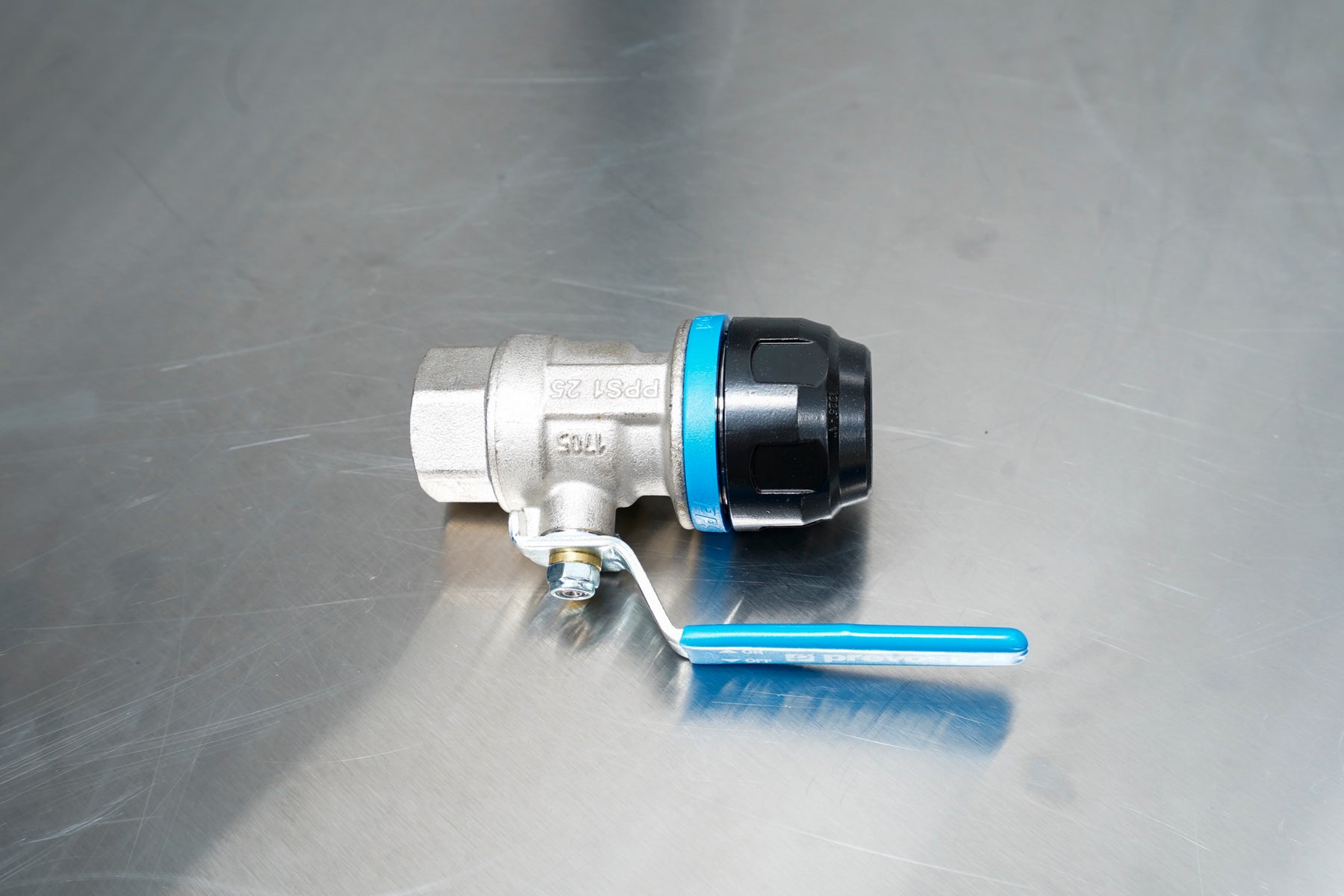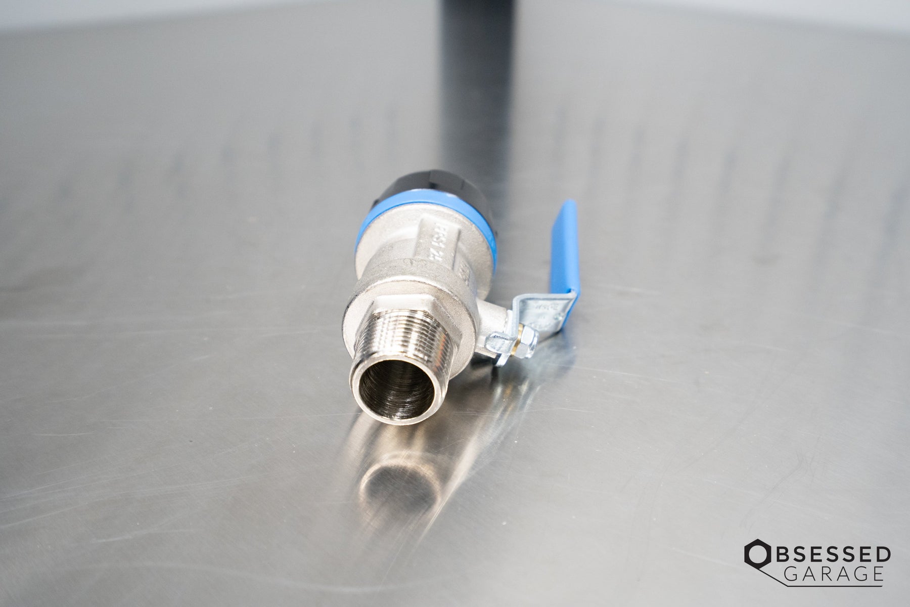 These valves are great for a quick shut off. This fitting allows your 3/4" NPT connection to adapt to a 1" Prevost pipe with a valve between.
