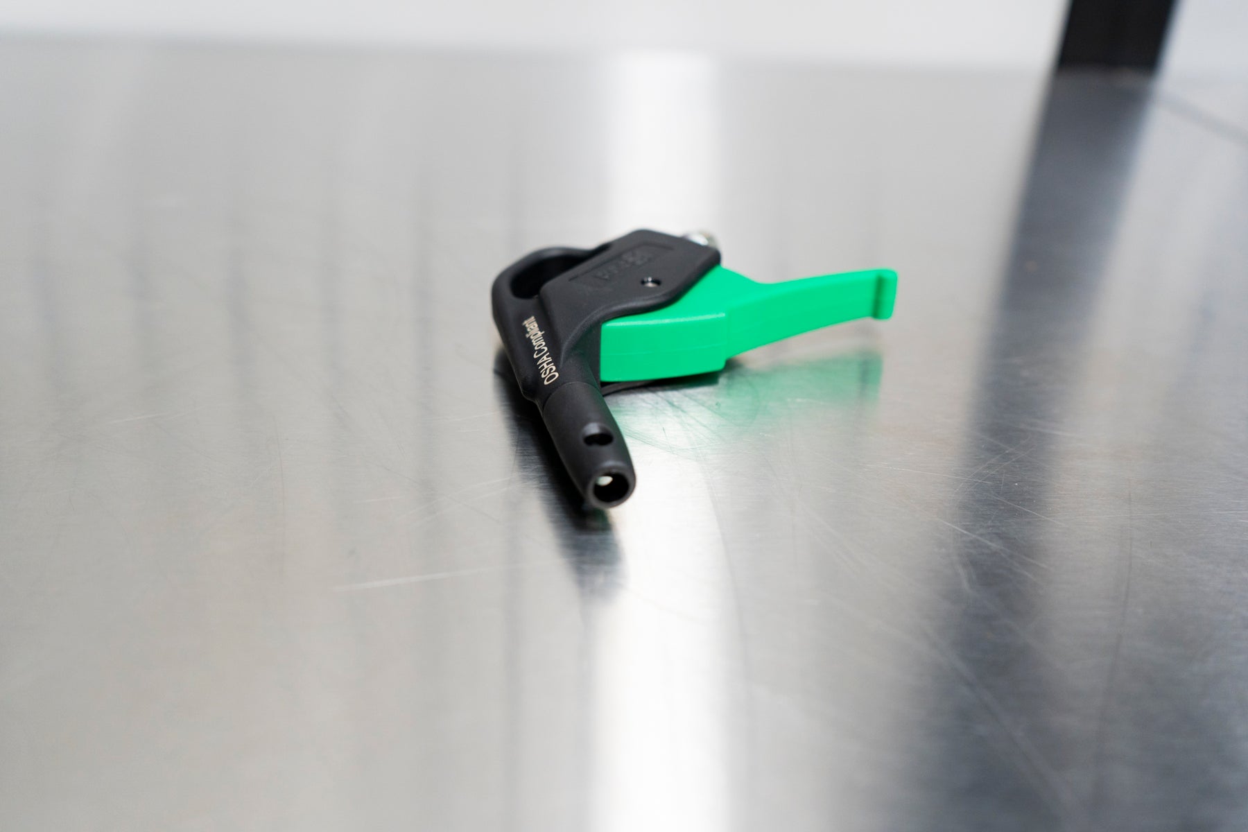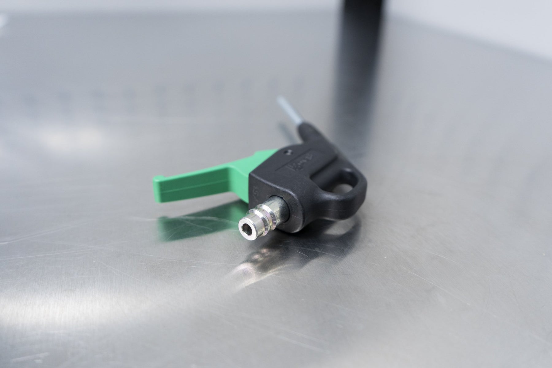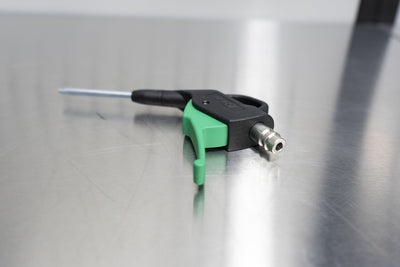 These are OSHA-compliant blowguns. They have a polyamide composite tip that has side vents for maximum safety. These have the Euro High Flow fitting attached to them, so make sure you have Euro High Flow couplers ready.