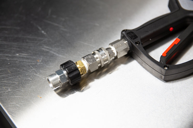 This adapter can be used to convert any M22 Female (15mm) to M22 Female (14mm). This used to be needed to connect our sprayer and wand kits to a pressure washer with 15mm connections. Now, we have new stainless steel adapters that replaced this piece: