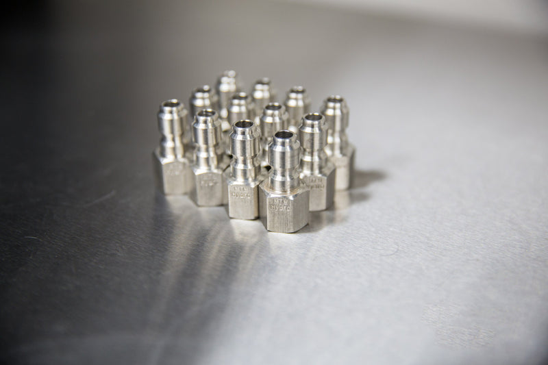 Stainless steel quick disconnects(QD) are designed for higher pressure than us car guys will be using, but will hold up much better to corrosion. Ā Also, it looks much better and really doesn't cost much more.