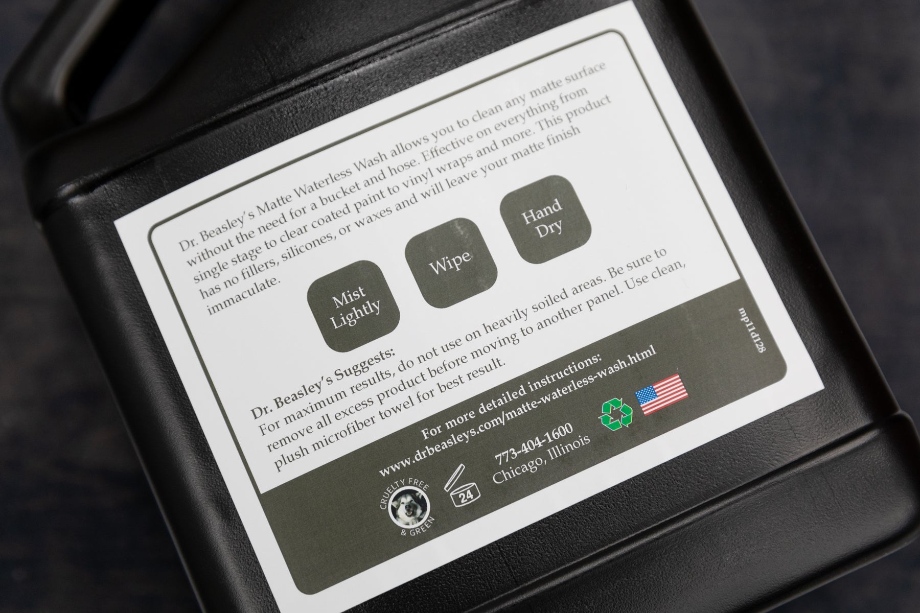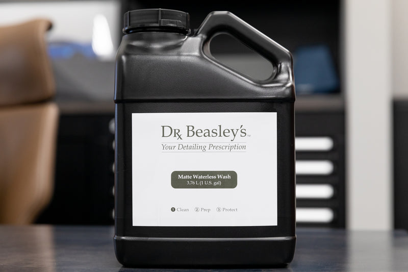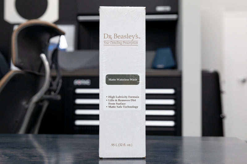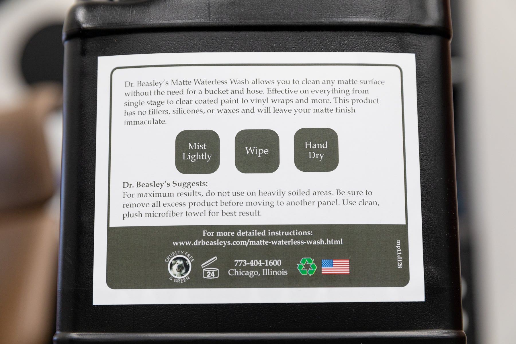 We're now carrying a full solution for matte paints and films in the store, we're working with Dr. Beasley's to offer a full solution for owners of frozen / matte paint. From experience, we know matte paint can be a pain because you can not polish it without ruining the finish and if it's coated you're not going to be able to remove it until it has failed. We did a whole series of using Dr. Beasley's products on a black frozen M5, I suggest you check out the series to get an idea for what products should be used on your matte paint. Matte Waterless Wash is meant to be used as a washing solution that removes loose contaminants from matte & satin finishes without the use of water. If you don't have access to a water source this is your next best choice for washing your car with light dirt and contaminants. If your car is heavily soiled we suggest you do a proper wash with some buckets and shampoo.