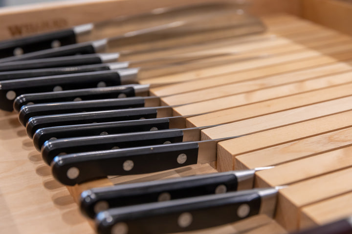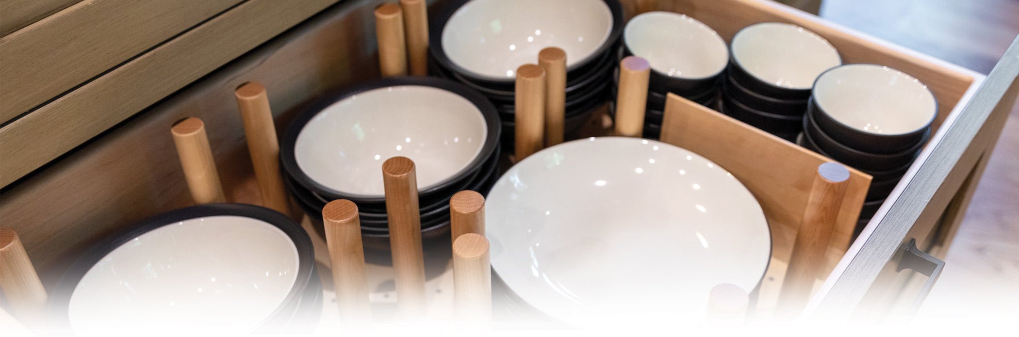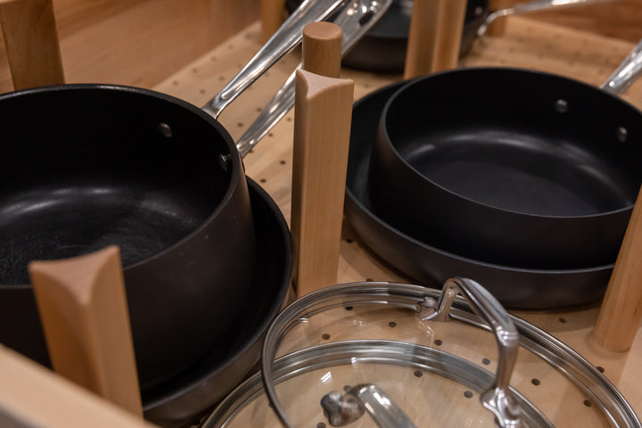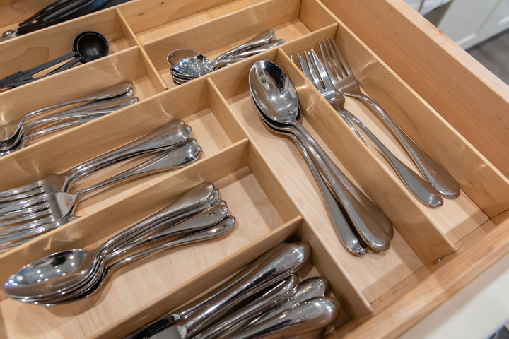 We’ve found Häfele Fineline to be the premier kitchen organization solution. These inserts are great for the storage of larger utensils, foils, and kitchen tools. You can arrange all the top drawers in your kitchen to your liking, not just your cutlery drawers. What really makes this system distinct is that the inserts can be trimmed for width and depth for a custom fit.