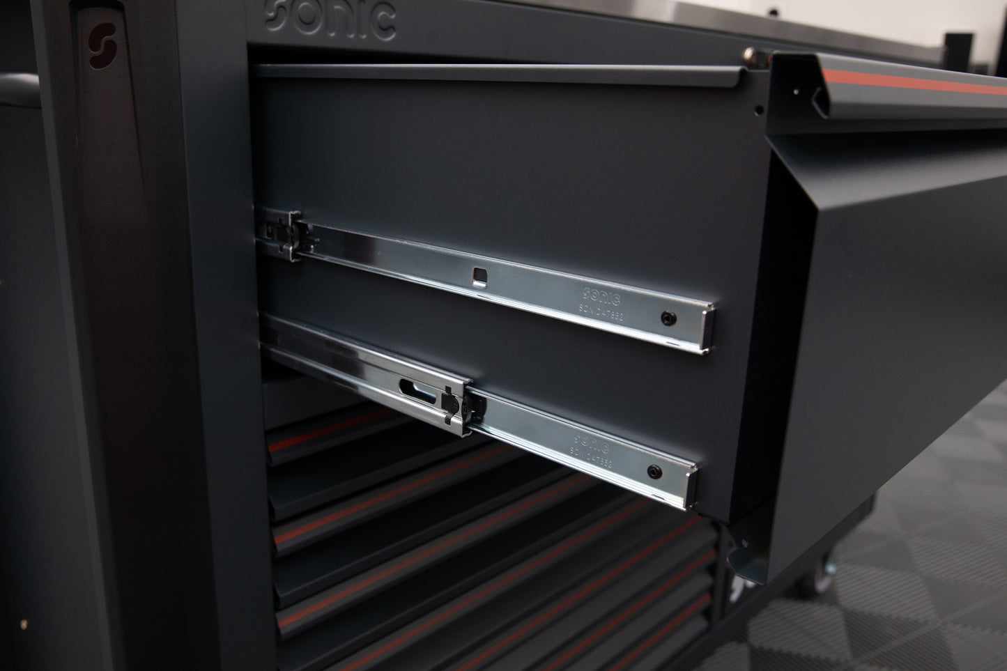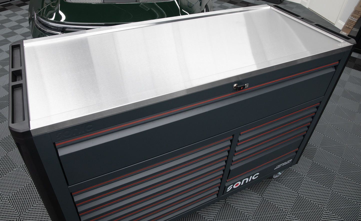 Like the other toolbox options in the Sonic NEXT line, the worktop is built from reinforced stainless steel with a drip edge to prevent fluids or tools from rolling off the workspace. This toolbox is Sonic’s largest roll-around box in the range - it’s undoubtedly the ultimate storage solution on wheels.