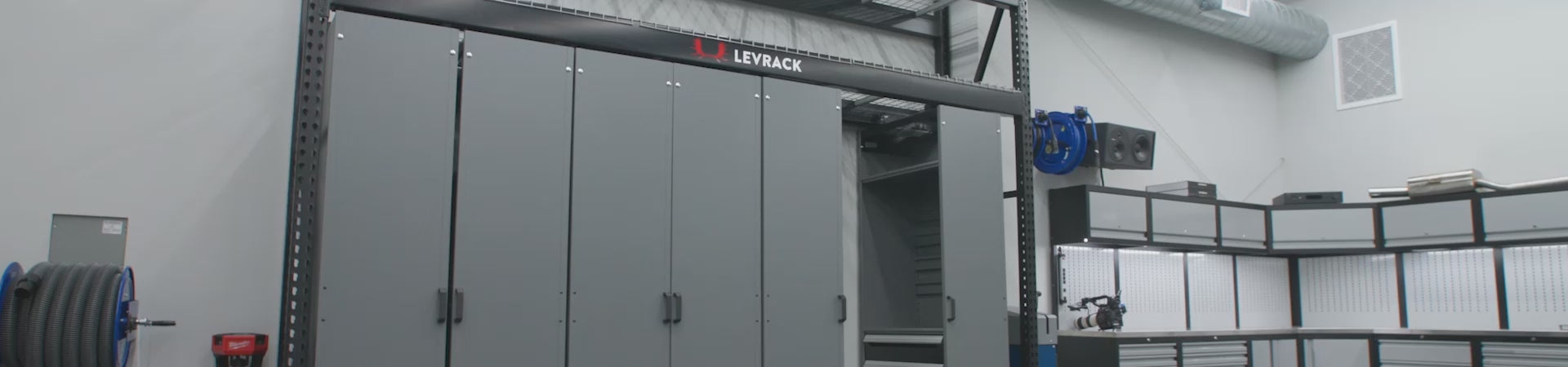 The best storage solution we've found to maximize your space in an efficient and organized manner is Levrack. It can be a hassle to find a place to store your wheels, tires, exhaust, and other larger items, but not with this storage system. The industrial pallet racking, mobile aisle shelving, and accessories ensure that you have a place to house all of your things in a systematic way. If it's efficiency, durability, and customization you want, then Levrack is the answer.