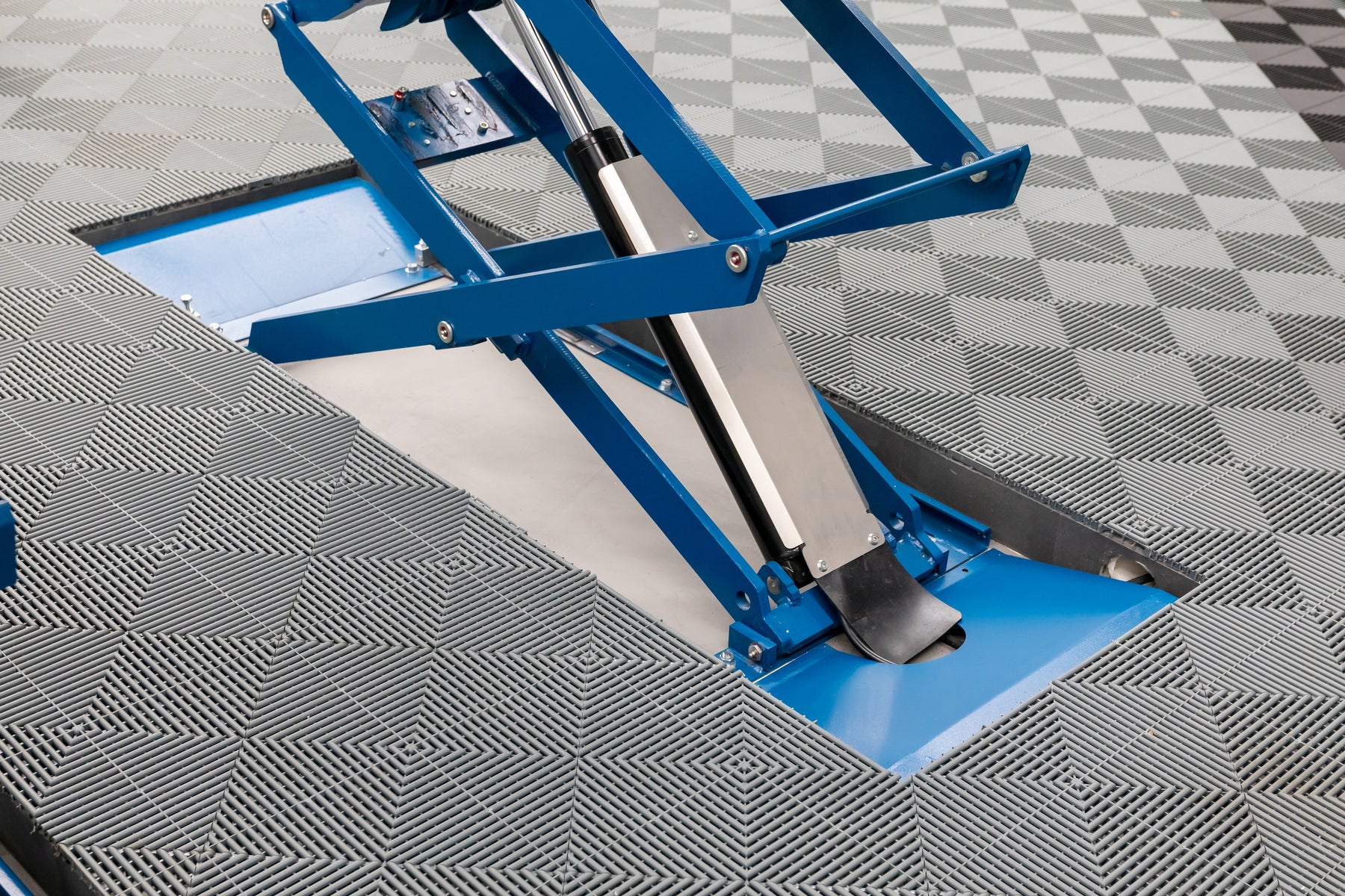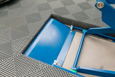 Around early December 2021, Mike F. installed my Nussbaum Jumbo HF 7 in my garage at OGHQ. It came out freaking sick. We used this Lift Recess Kit from Nussbaum to provide room underneath the metal ramps for hydraulic hose passthrough, which, if you’ve seen any of our photos or videos, came out really clean. This kit has the metal ramps that sit down at the end of each of the recess pits when doing a recessed Nussbaum Jumbo 7. It allows the hinged lift ramps to sit flat and level with the lift platforms while the lift is in the down position.