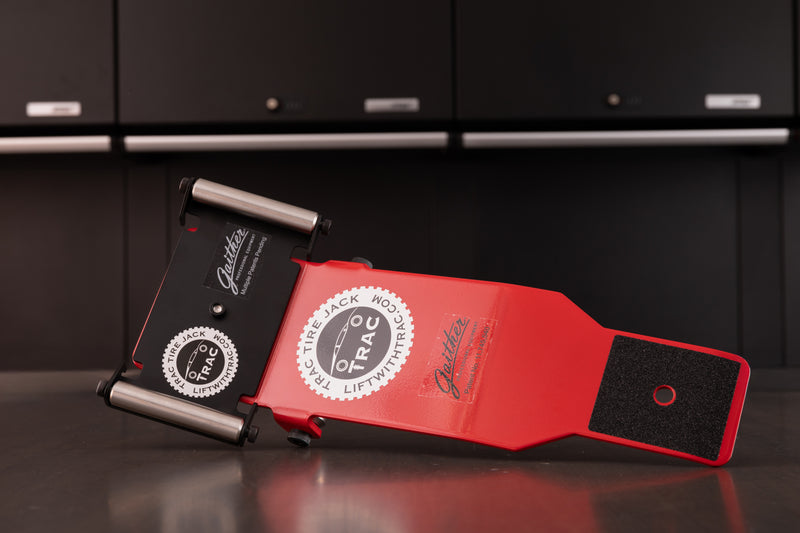 The TRAC Tire Jack is a handy tool that makes it much easier to take your wheels on and off. This is especially helpful for larger wheels and tires, and for cars with pricey carbon ceramic brakes—you really don’t want to damage those!