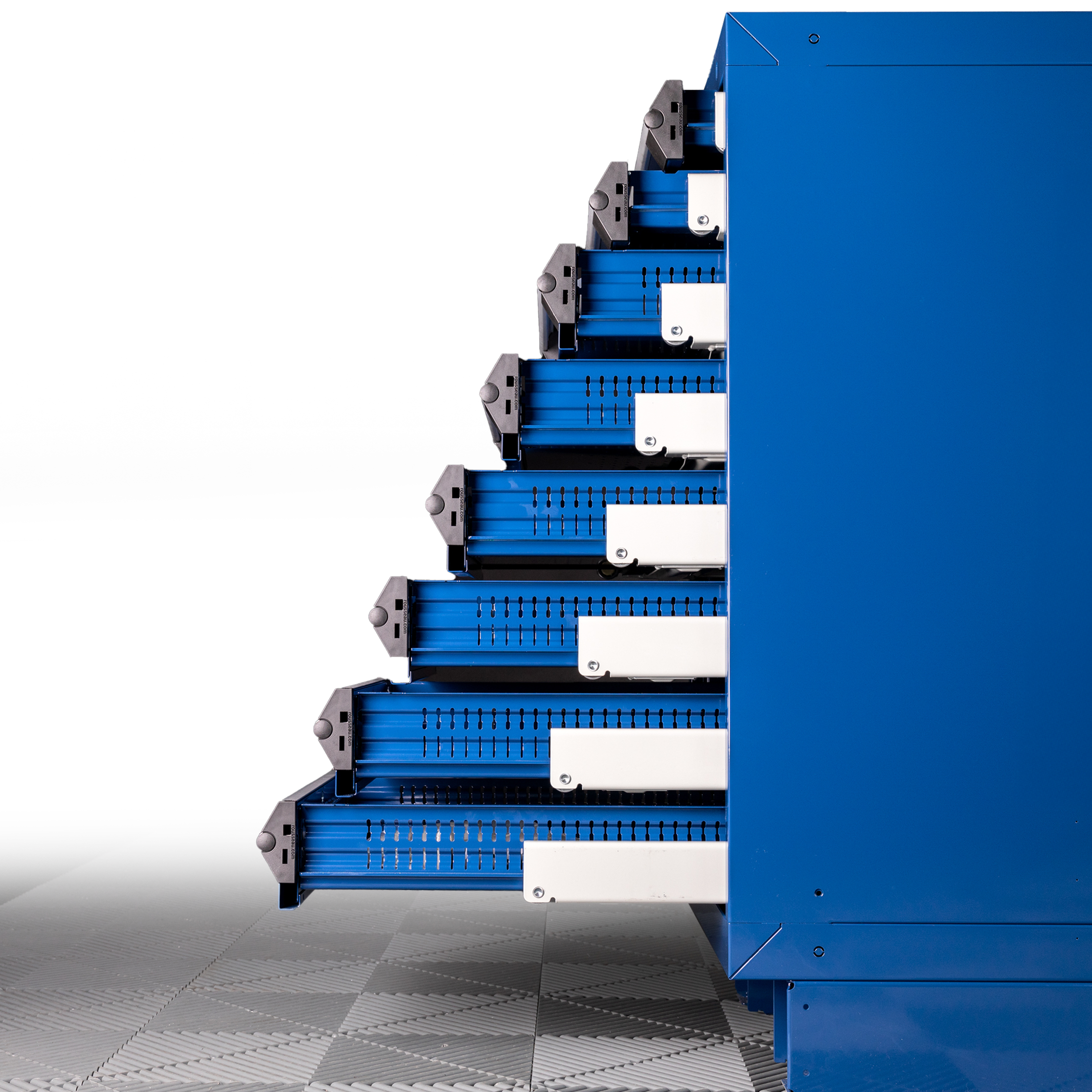 Usually, you can only open one drawer at a time so your toolbox doesn't fall over. If you have a cabinet array, however, you won't have this problem, and it's much more efficient.