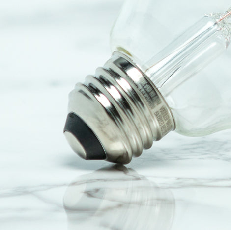 As with the bulb shape and size, the base of a light bulb is categorized by a letter and a number (E26). The “E” stands for Edison and the number refers to the width in millimeters.