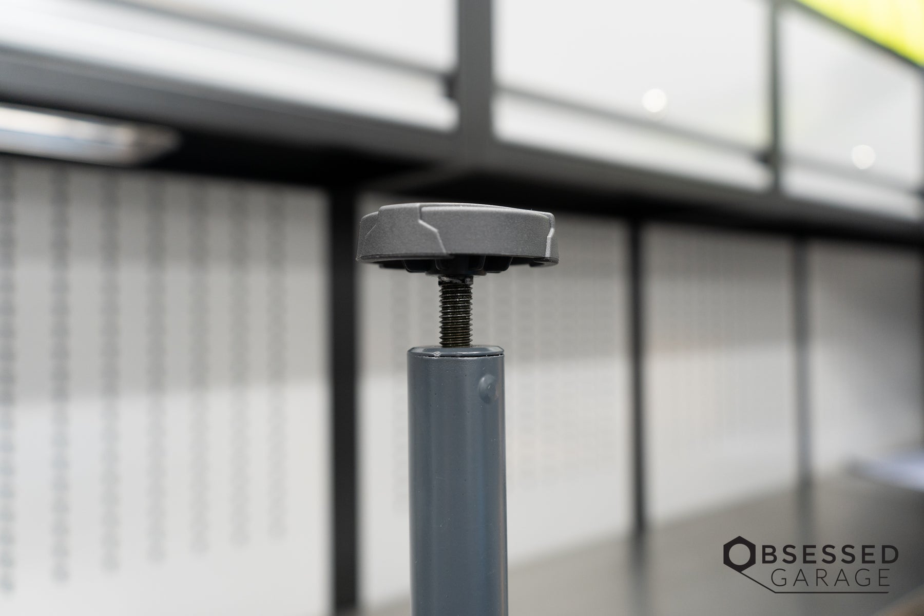 To increase safety when in use, work light cables can be stored in the safety clips placed on each of the tripod legs.