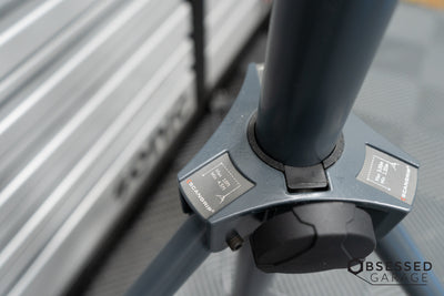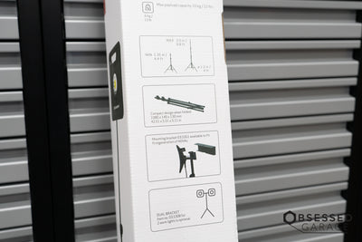 The tripod is made of durable powder-coated steel and a welded steel mounting cap (10 mm thread) ensures the durability of the universal tripod stand. When not in use the tripod is compact with a weight of 6 kg.
