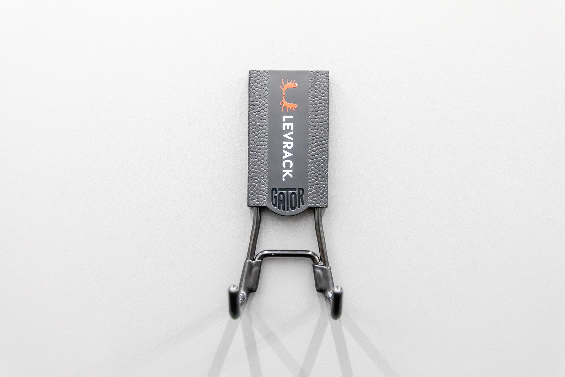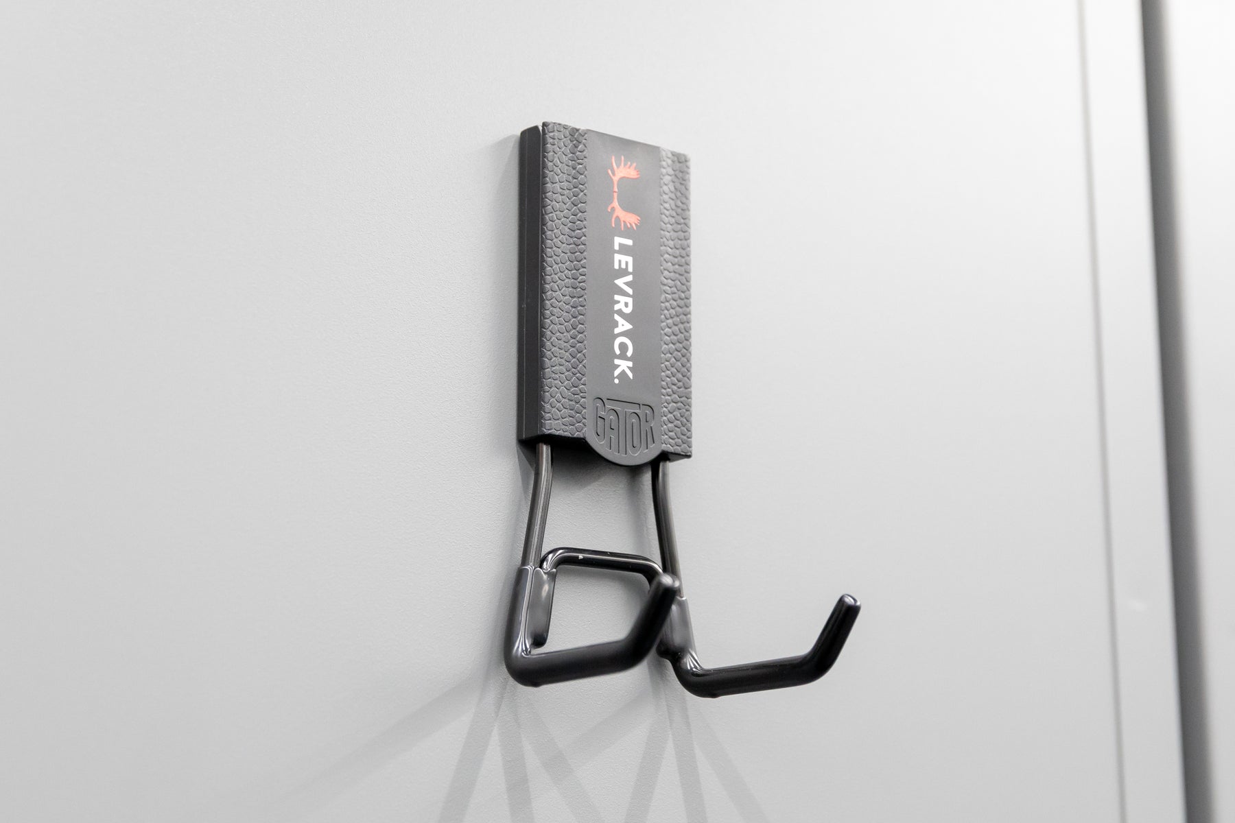 The Levrack Gator Hook is a magnetic hook that can attach anywhere on the Levrack Storage Solution. This hook is 2.5 inches and can hold items that are up to 25 pounds heavy.