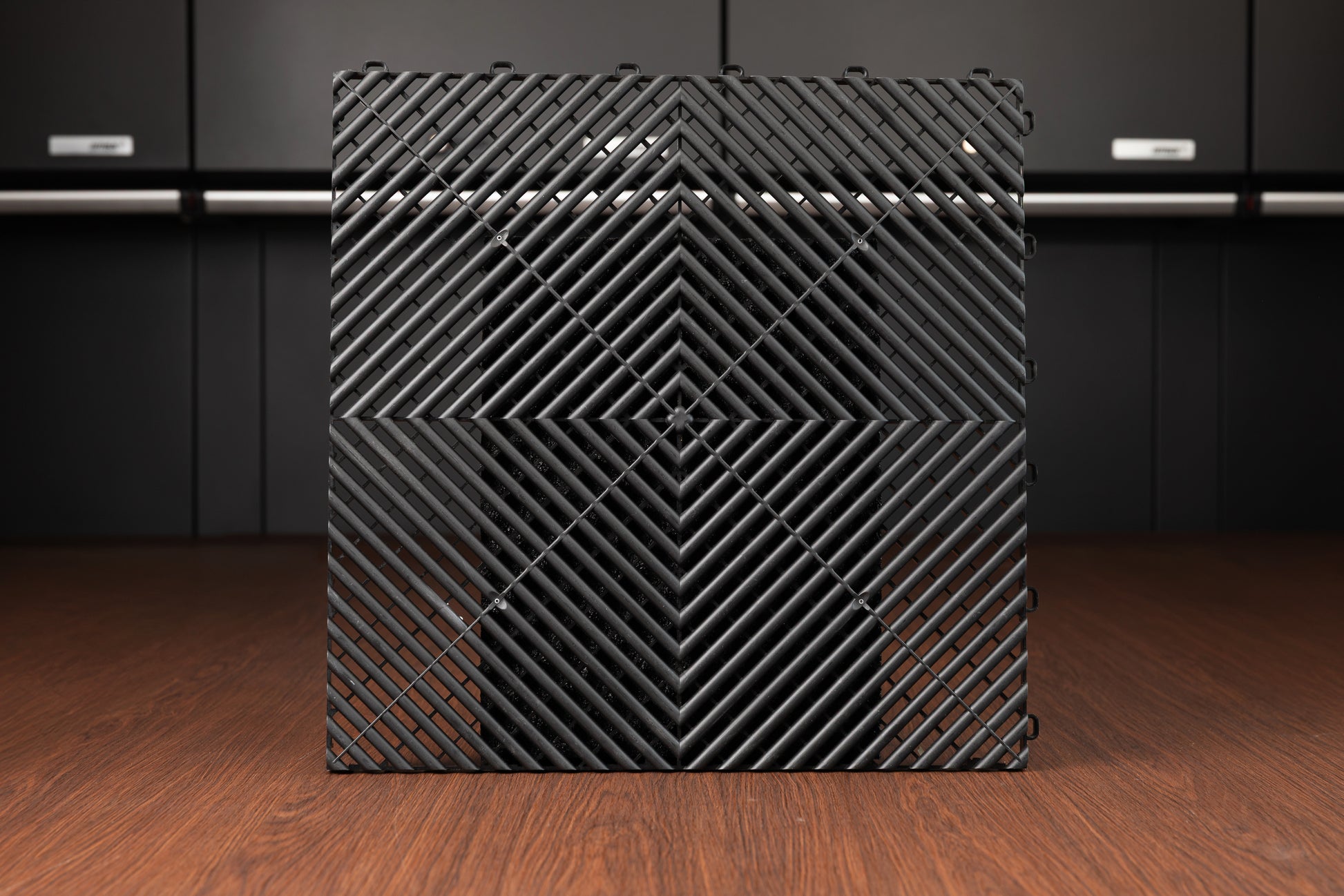 Swisstrax tiles allow you to hide that failed epoxy floor you're ashamed of or even cover up your failed/cracked foundation in the garage. You'll never have an issue with dirt or water again, this is due to the radiused top of Swisstrax RibTrax Pro dirt and water being easily hidden under the tiles! When it comes time to clean your floor you can easily take your shop vacuum to your tiles and suck up any dirt that is underneath the tiles. They can also separate easily for a yearly deep cleaning if needed.