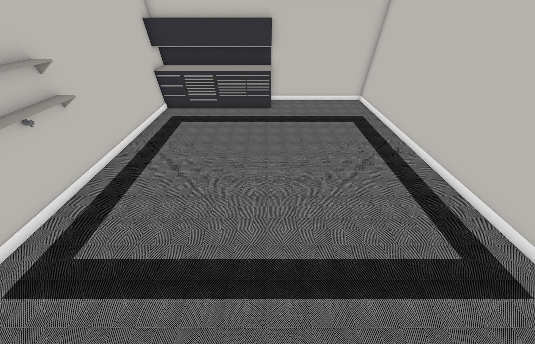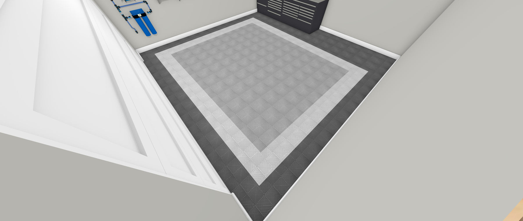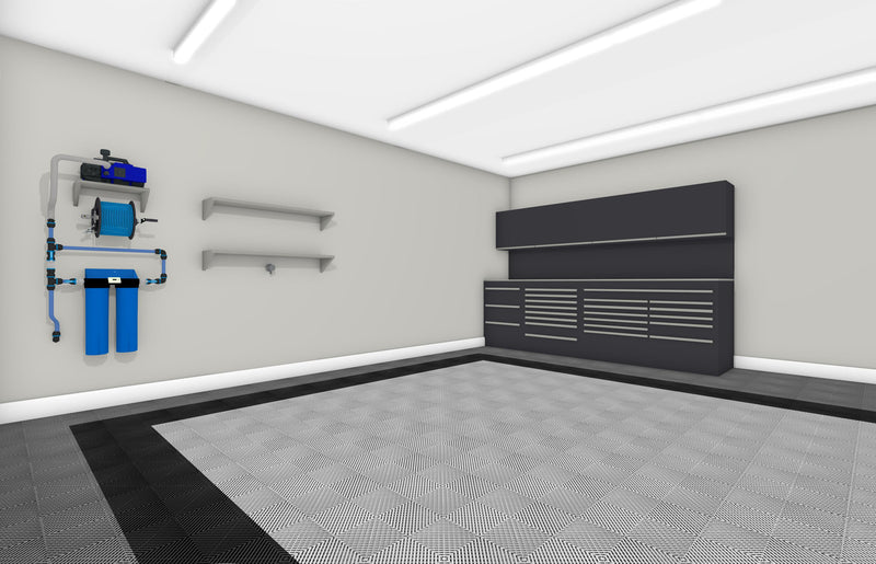 This two-car flooring solution is meant to be a simple one-click purchase to cover the floor in your two-car garage with a pre-determined Swisstrax design and color scheme.