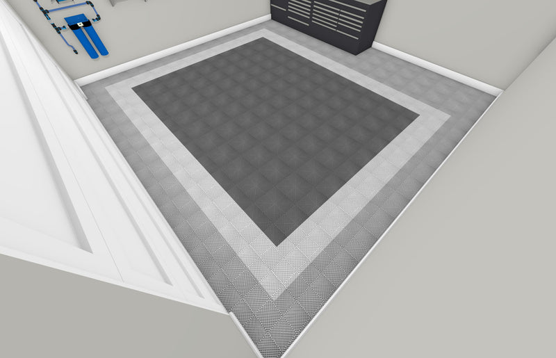 2. Choose the color scheme you’d like to use for your garage. The color choices are listed from the outer edge that touches the walls and garage door to the inset border that is one tile wide to the interior pad covering most of the floor. The included looped edge color will match the first listed color for that outer edge.