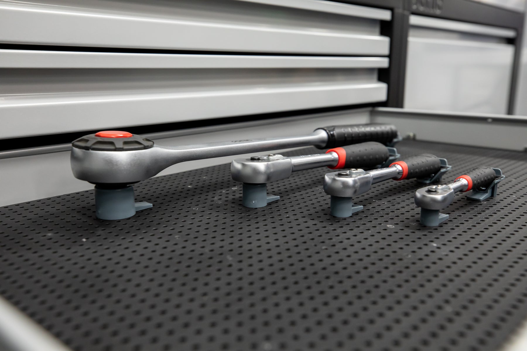 These are the ratchet head holders for the Tool Grid System, They come in four sizes (1/4", 3/8", 1/2", 3/4"). They come inĀ packsĀ of 3, so one pack would be enough for 3 ratchets. I would order more than you think you need as they're fairly cheap and you're going to be better off having more than you need than not having enough.Ā