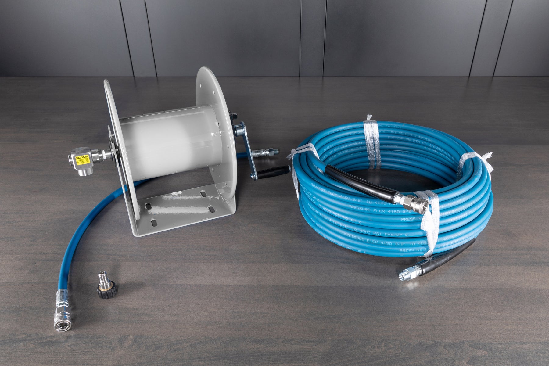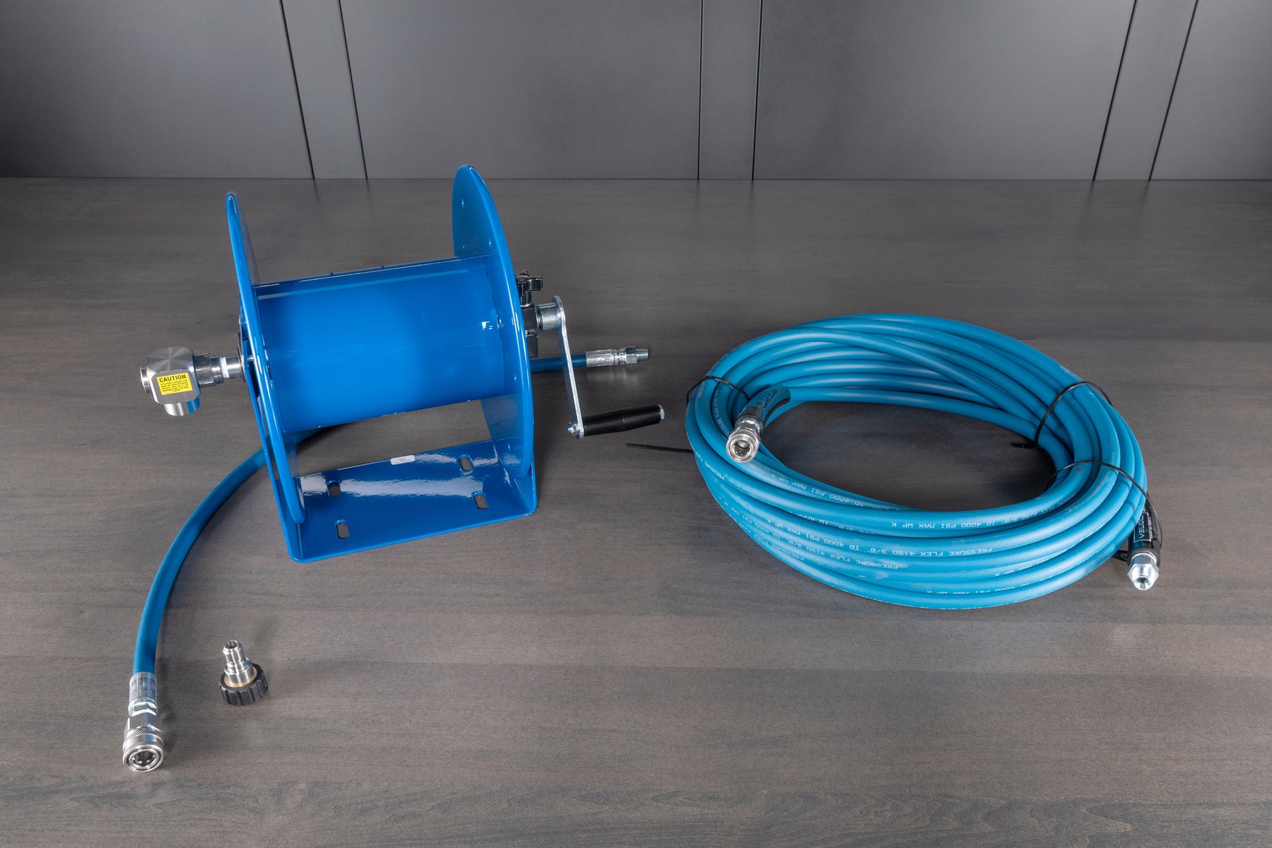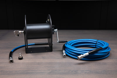 In our pursuit to make buying pressure washer accessories easier, we made this wall-mount hose reel kit that includes everything you need to put a High-Pressure Hose on a hose reel and connect it to your pressure washer.