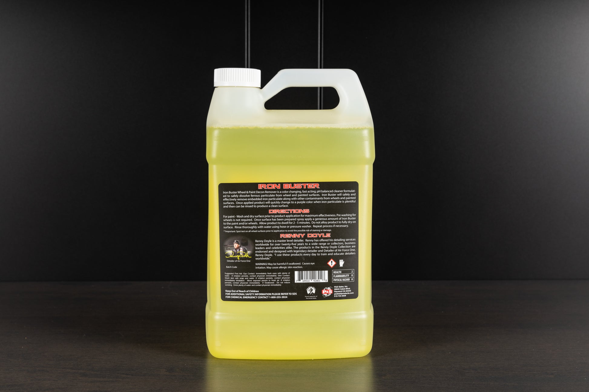 - Pre-washing for wheels is not required. Once the surface has been prepared, apply a generous amount of Iron Buster to the paint and/or wheels.