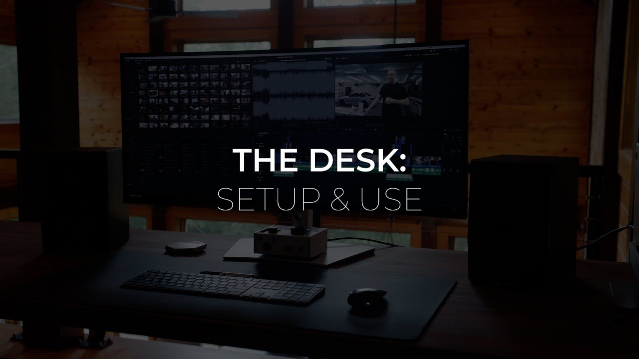 Complete desk setup with USB-C cables for laptop, ultrawide Dell monitor, and motorized L-desk for sitting or standing.