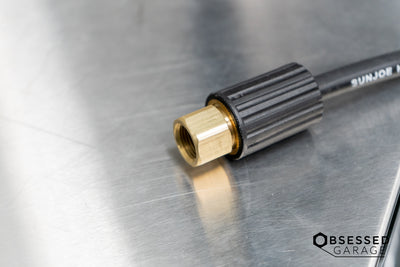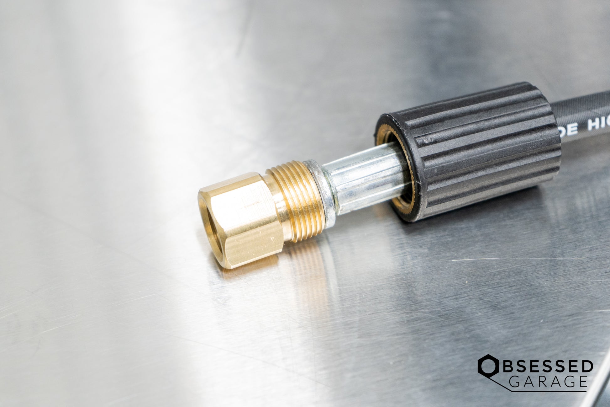 This is the connection you will need to extend the OE hose on your AR Blue & SunJoe. It takes a 15mm M22 and adapts that to a 3/8" female connection. What you would do is thread a 3/8" plug onto this so you can quick disconnect your extension hose.