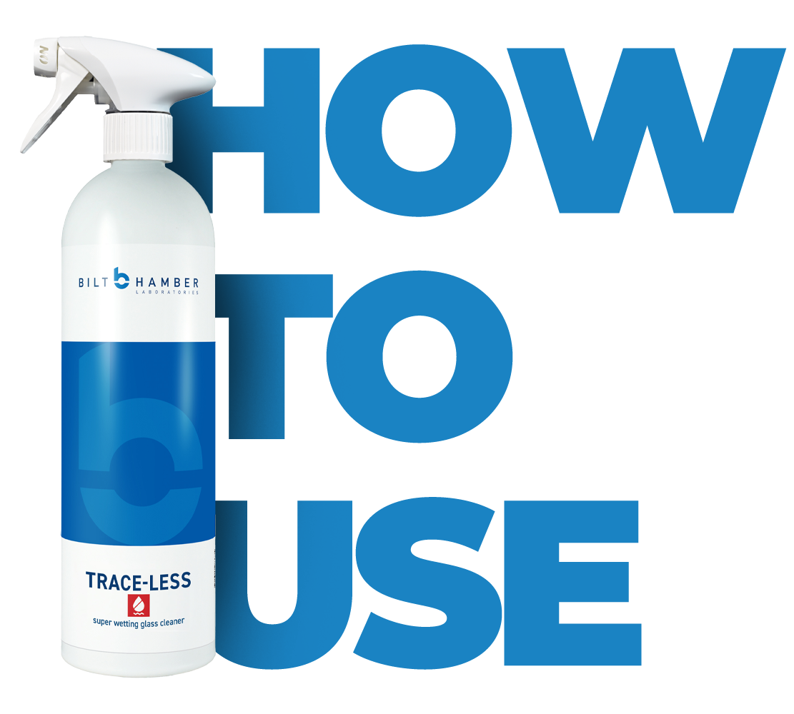 Bilt-Hamber Laboratories use unique super-wetting, 100% evaporating surfactants to produce Trace-Less. These special surfactants leave no such residue. Unlike competing products that run quickly from vertical surfaces, Trace-Less instantly wets glass surfaces ensuring uniform application and minimal product run off.