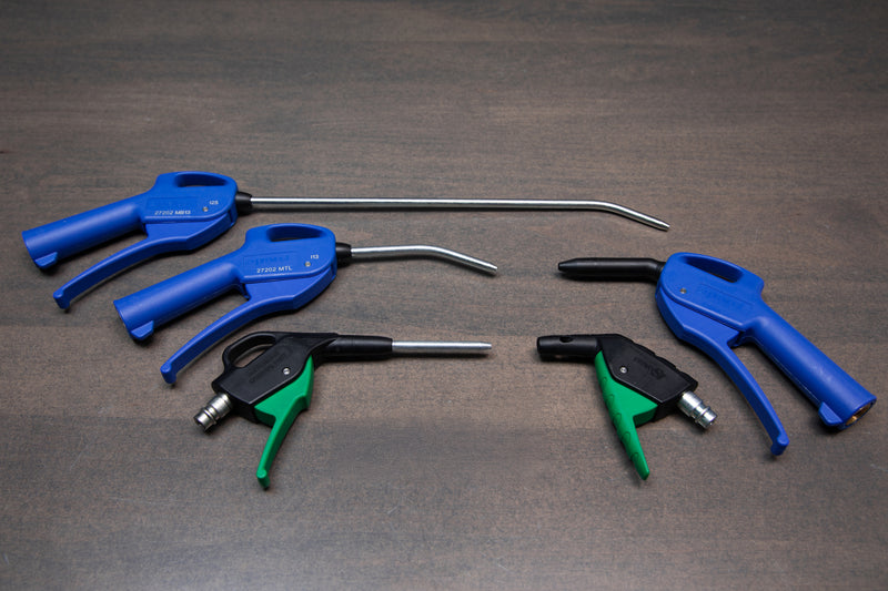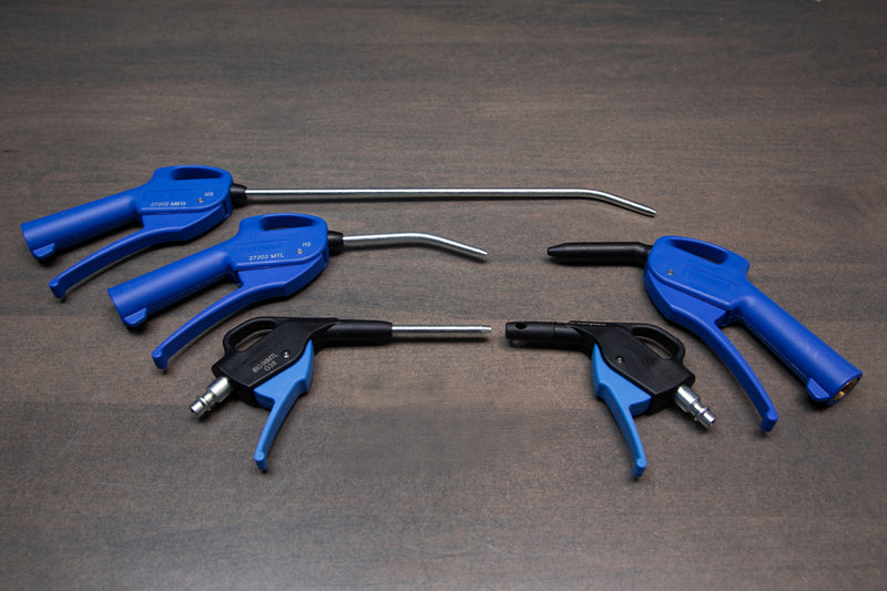 I like the idea of having a hand full of blowguns for different tasks. You never know when you need a specific one to fit in an awkward space while working in the garage. I have these six blow guns in my cabinets; they are a solid mix of different sizes and styles.