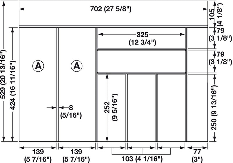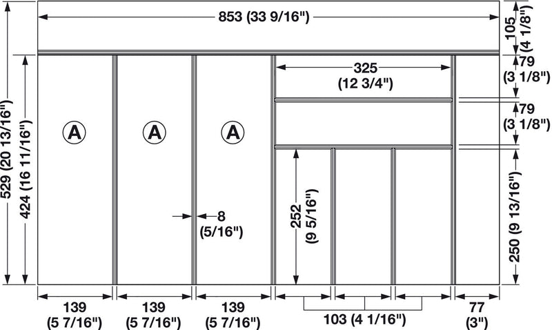 • Minimum Inside Drawer Depth: 424 mm (16 11/16”)