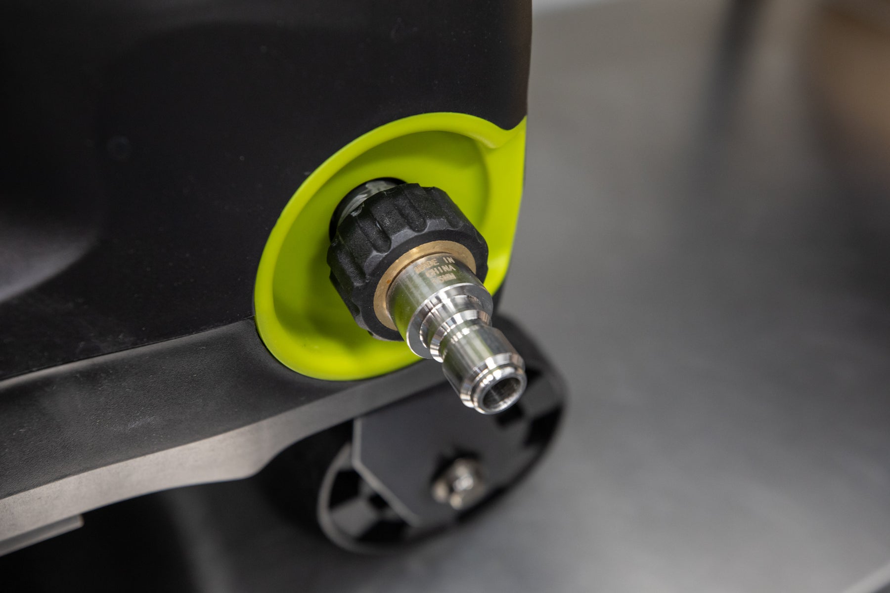 SunJoe, AR Blue Water Outlet -> M22 (15mm) Female to 3/8" Plug -> 3/8" Female Coupler -> High-Pressure Hose -> 3/8" Female Coupler -> Our MTM or Mosmatic Sprayer Kit
