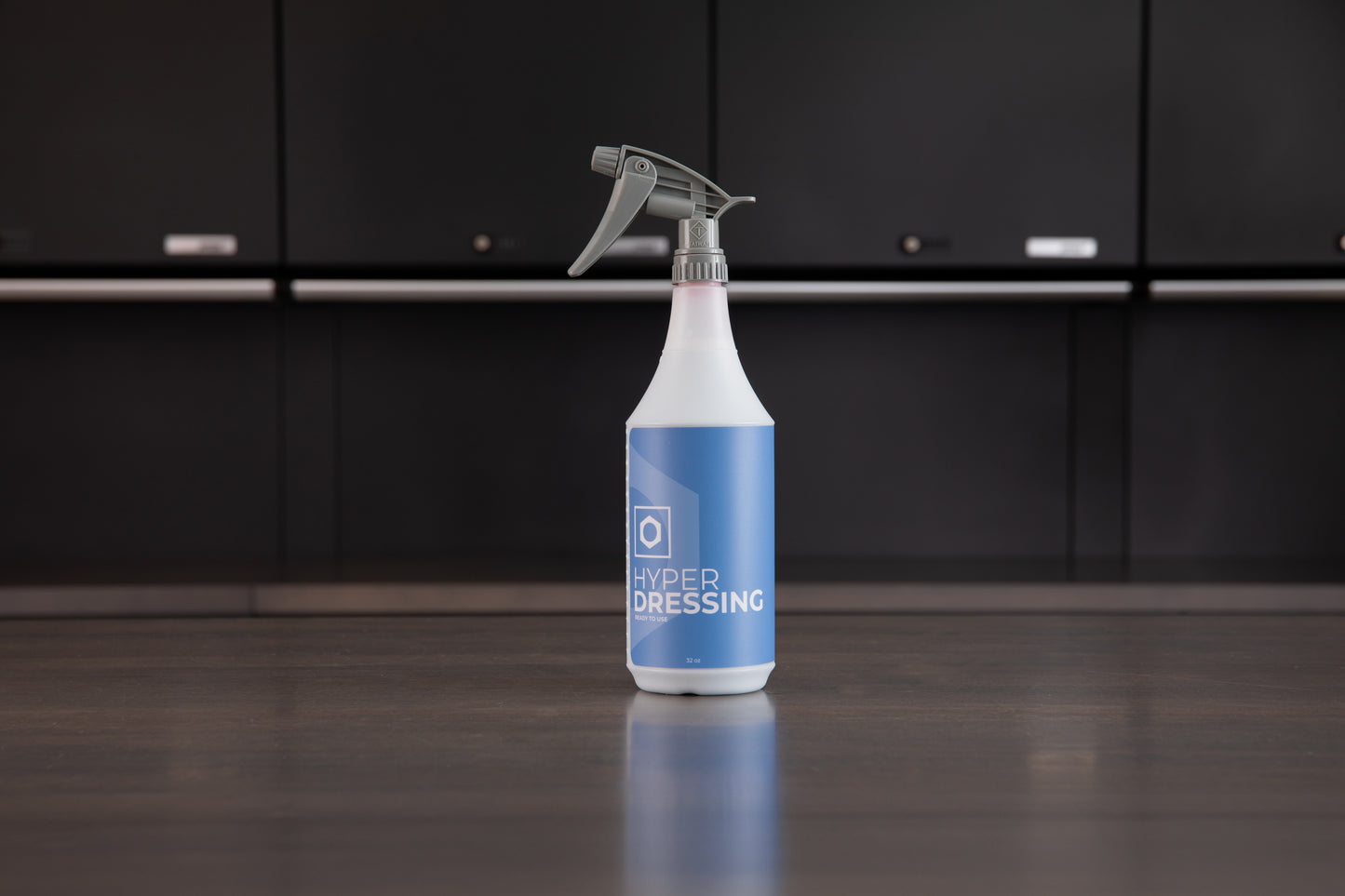 We also give you the option of ready-to-use or concentrated. Concentrated is exactly what it sounds like; it's pure stuff. I think its way to strong to use it like that, but it's great if you are planning to dilute it yourself. Ready to use is good to go as it shows up. Just screw on the sprayer and dress away. We have it diluted to 4 parts water and 1 part Hyper Dressing. I found that that is the ideal ratio.