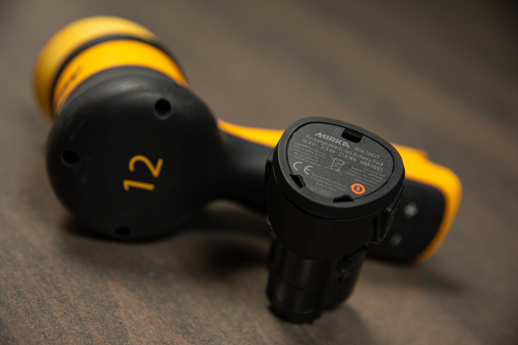 This battery is 2.5 Ah and is still big enough for the polisher to last a long time. I recommend picking one of these up if you are using the Mirka 3" Polisher in tighter areas and if you want to be extra cautious when polishing.