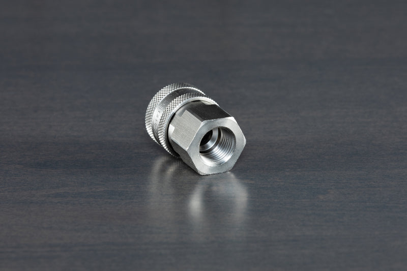 I worked closely with Jaimie from Mosmatic US to have these high-end quick disconnects made for us, the discerning prosumer. The Mosmatic T304 SS 3/8" Female QD Coupler would be used on a High-Pressure Hose or any other 3/8" fitting that's NPT threaded.