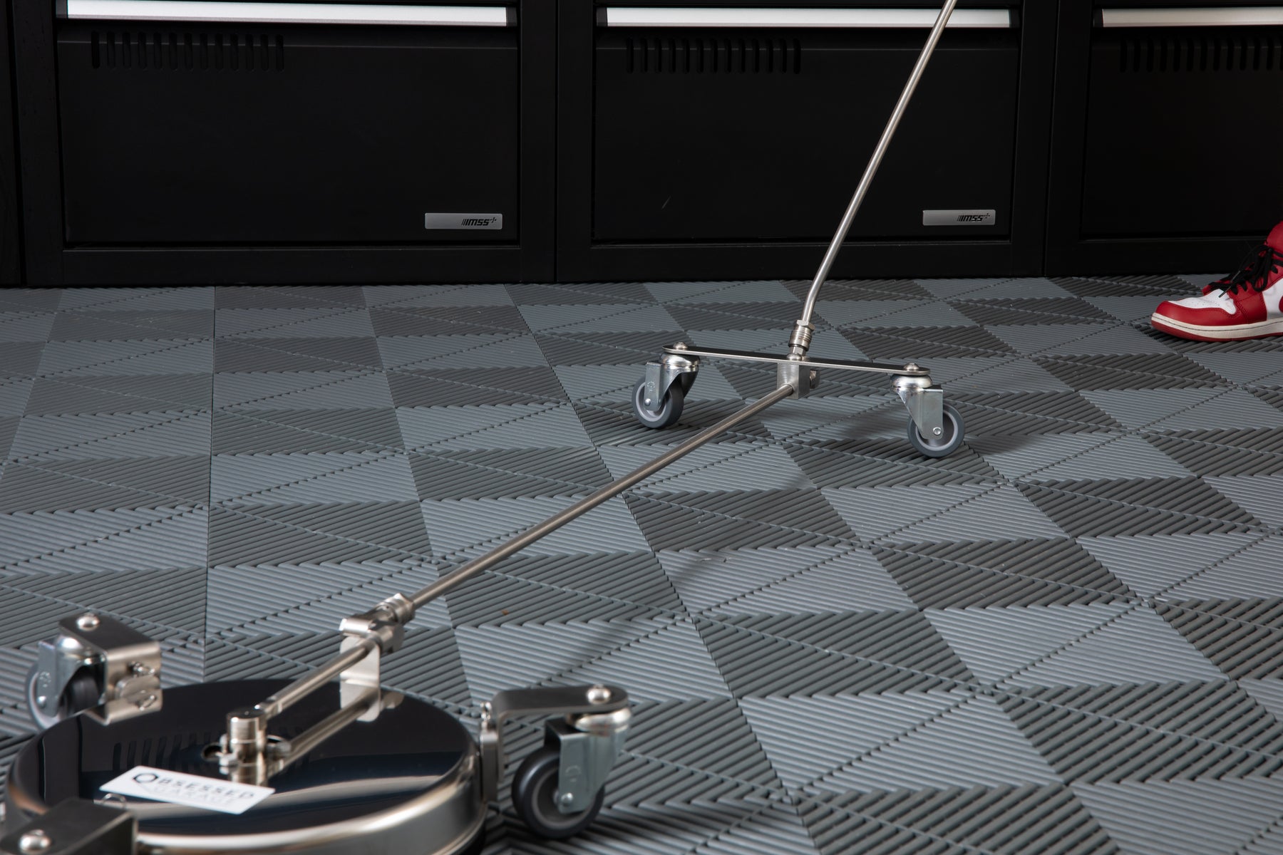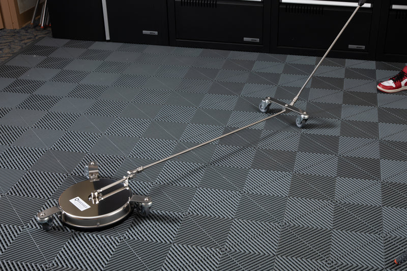 The Mosmatic Undercarriage Cleaner Extension helps you reach every part of your undercarriage without bending over and crawling all over the floor. It's an attachment for the Mosmatic Undercarriage and Surface Cleaner. I like to use the 40" Mosmatic Stainless Steel Bent Wand with it, so be sure to pick one of those up if you don't have one already.