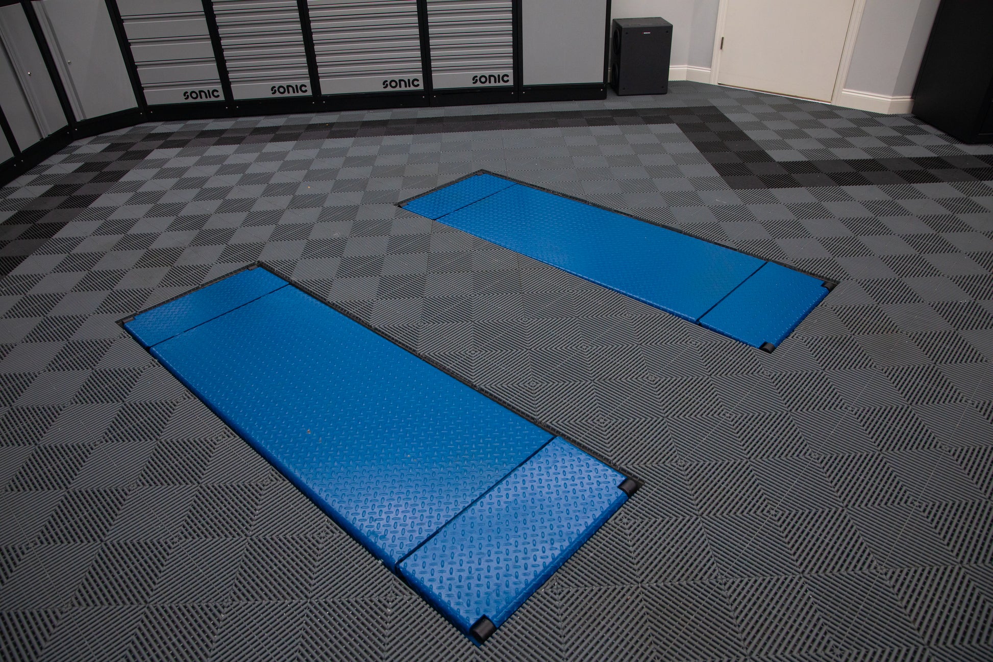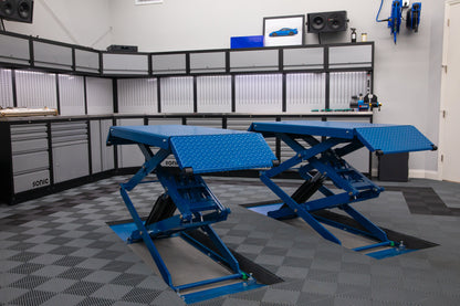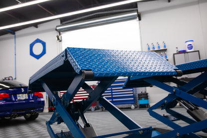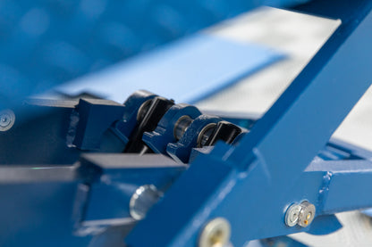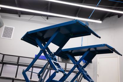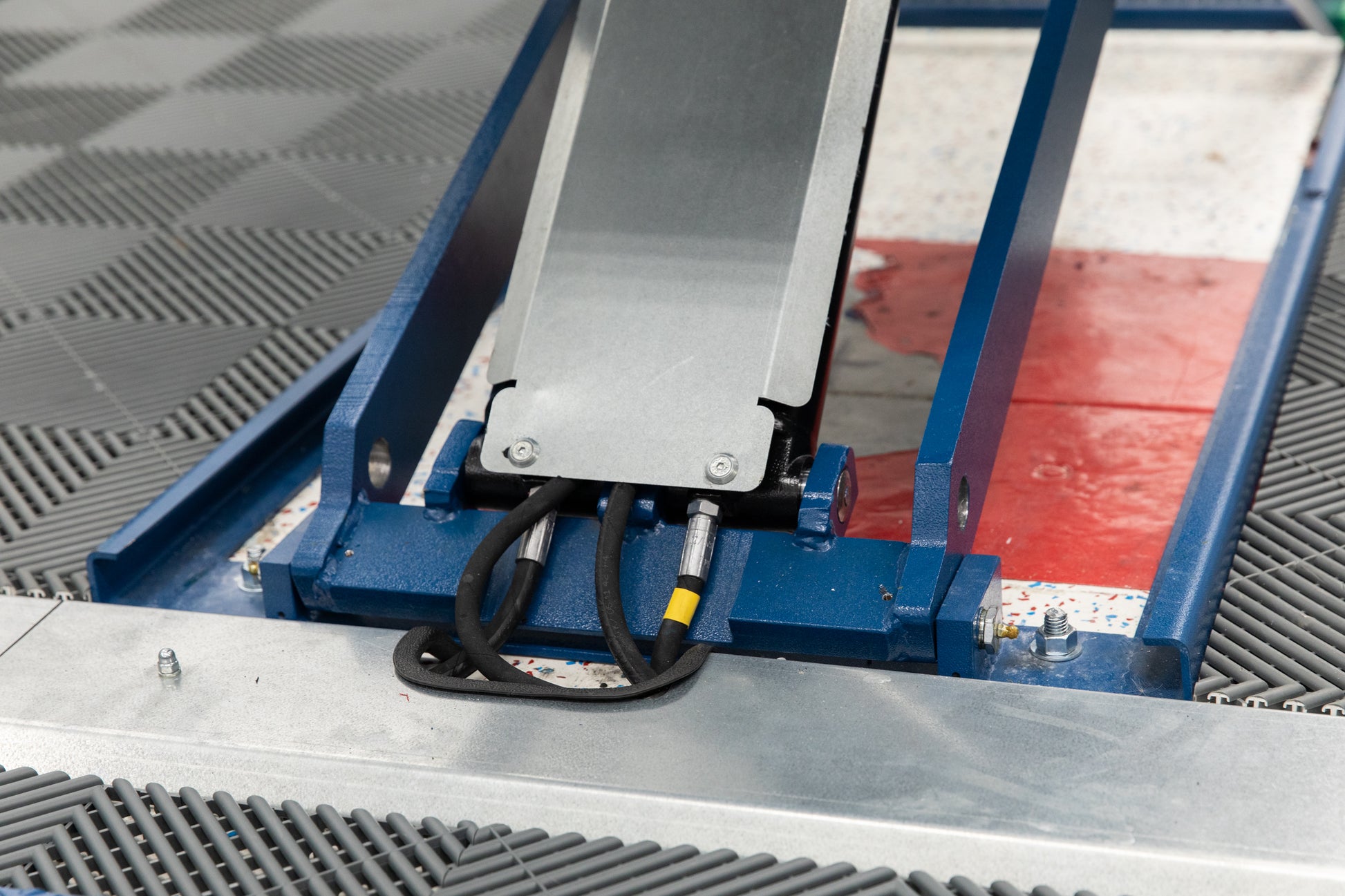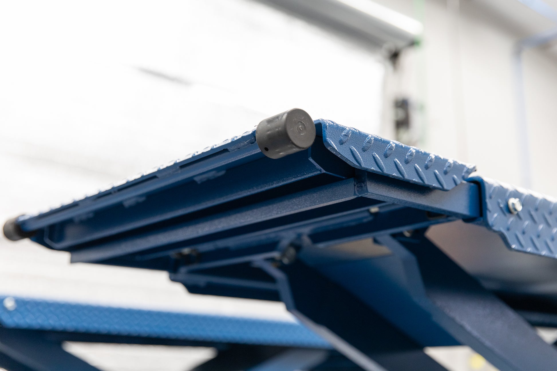 The hydraulic double scissor lift Jumbo HF 7 with a capacity of 7,000 lbs is the perfect ALI-certified all-round lift for car workshops where speed, flexibility, and reliability are in demand. With its small space requirement, its high lifting height of 79 inches, the length-adjustable platforms, flat design, and Hyperflow technology, it is the lift that no professional car workshop should be without. Whether for tire changes, oil changes, work on the engine, or inspection, for low-lying sports cars, SUVs, or vans, the Jumbo HF 7 is ready to lift at lightning speed. The drive-on ramps can be unlocked and locked by one-hand operation in order to extend or shorten the platform.