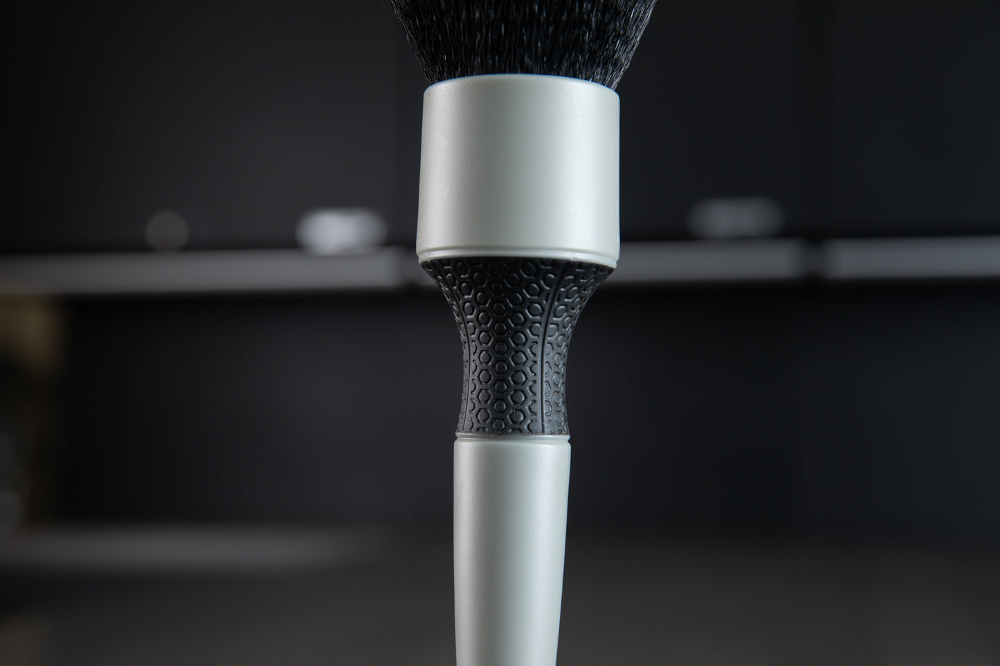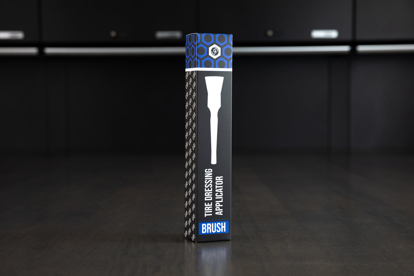 We collaborated with our friends at Detail Factory to develop this brush because I believe they make the best brushes in the detailing world. It has the same bristles as the Curveball Brush, so dressing goes on easily and predictably with one swipe. We also included the hex-patterned rubber section where your hand goes for a better grip. I'm telling you, once you get it in your hand, you'll know it's legit.