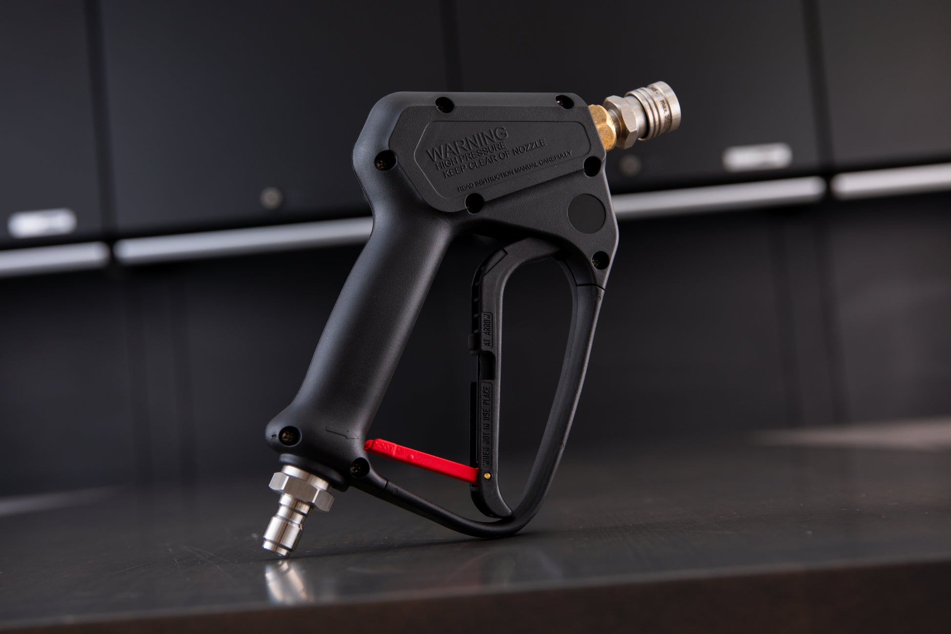 If you need to attach this sprayer to a High-Pressure Hose, you will need to purchase this coupler separately: Mosmatic T304 SS ⅜” Female QD Coupler