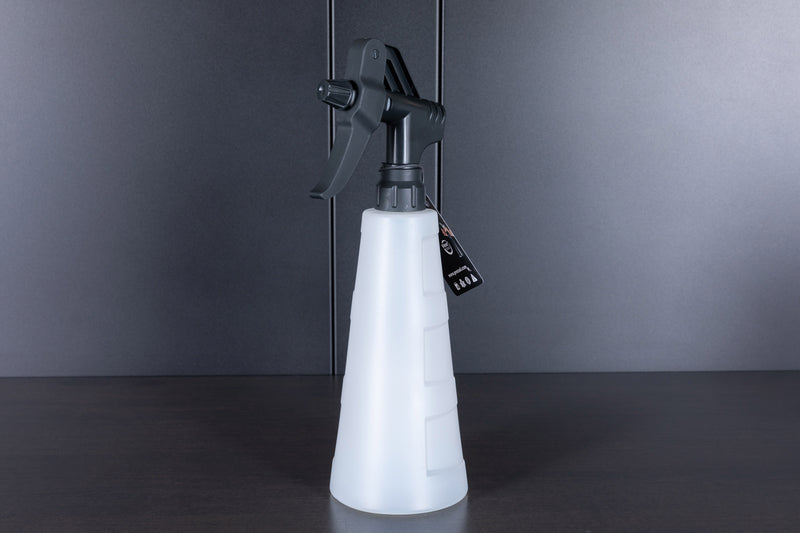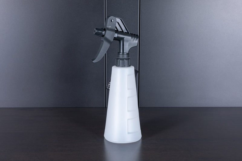 The bottle has been enhanced through a fluorination process that bonds fluorine atoms to the plastic’s surface, altering the composition of the plastic itself. Fluorination improves the chemical resistance and barrier properties of the bottle, mitigating the permeation of liquids and vapors. If a bottle allows permeation, paneling (bottle deforming due to vacuum) will occur. The ProSeries bottle will not panel and can store almost any detailing chemical.