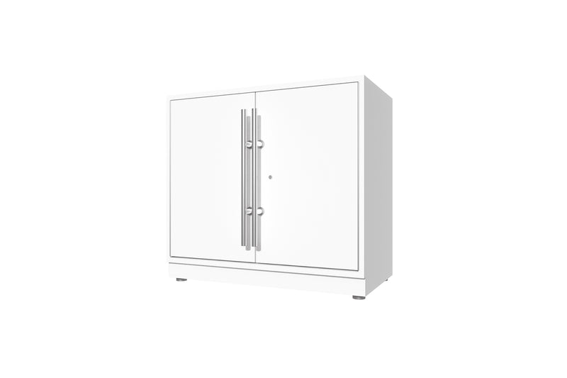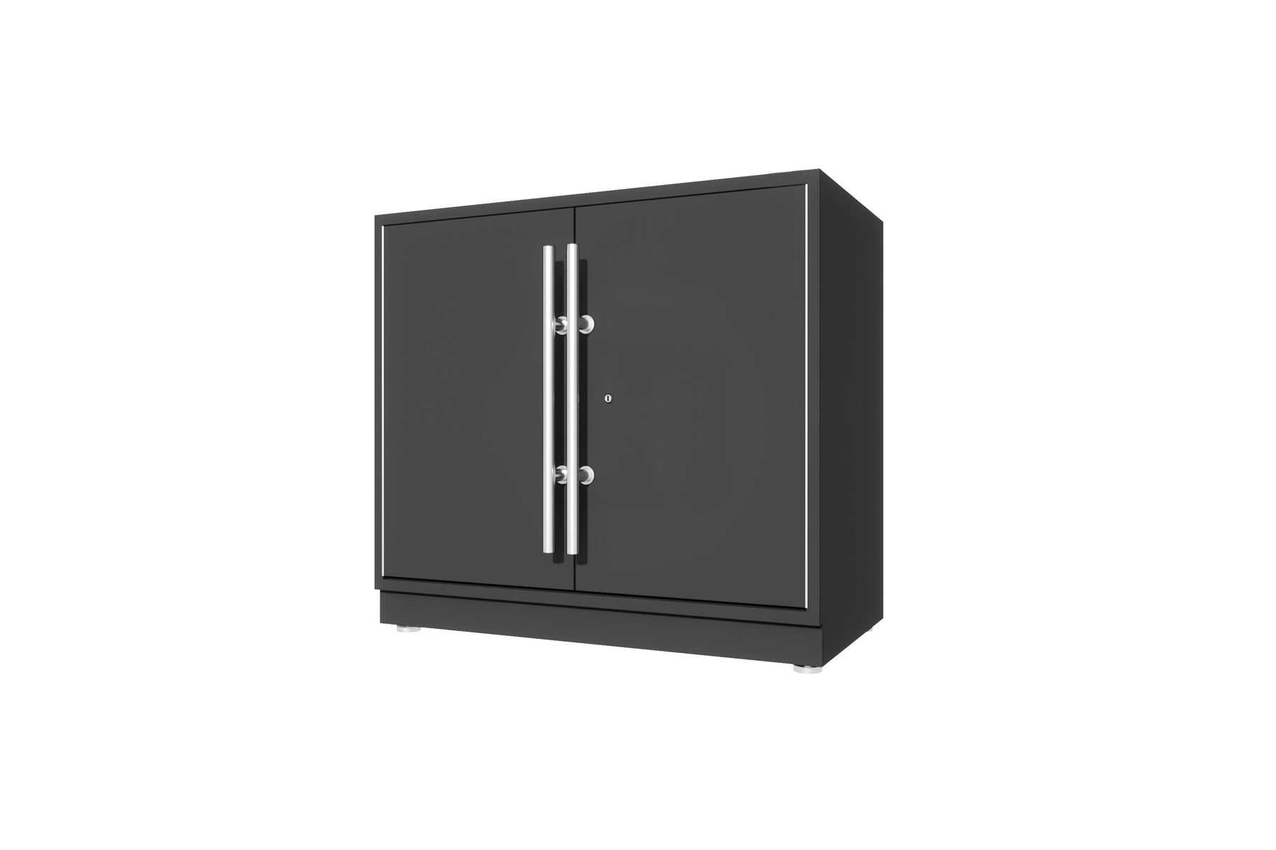 The LUX 2-Door Base Cabinet is great for larger items that won't fit in the drawered cabinets. The doors on these garage cabinets are extremely stout because they are dual-walled. These cabinets come with piano hinges that make the door feel very solid. LUX paints the entire frame, not just the doors. The hardware emulates high-end custom cabinetry; Lux is what you'll want if you're going for a more upscale look.