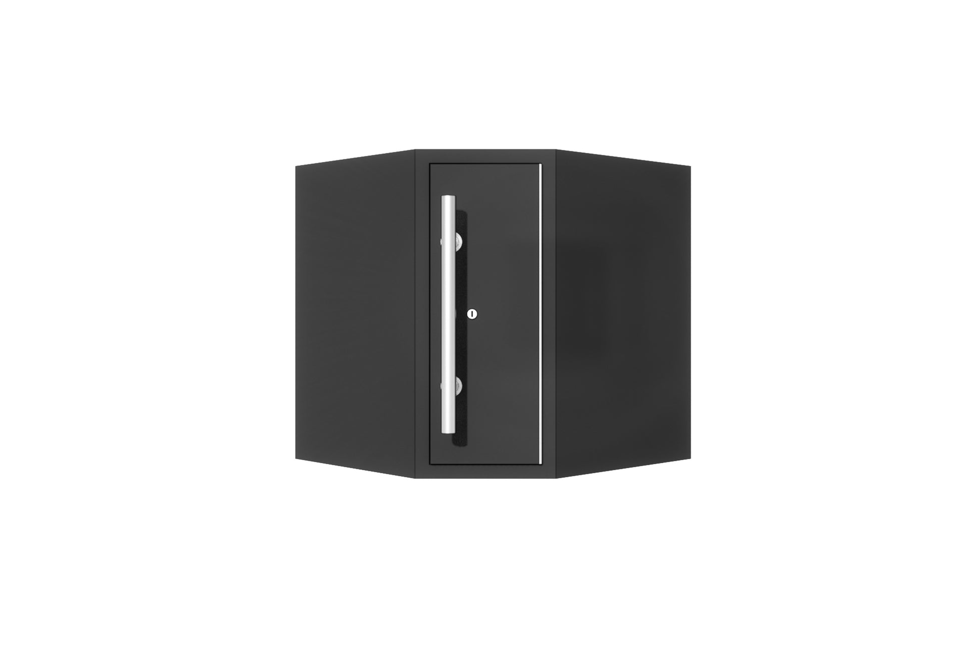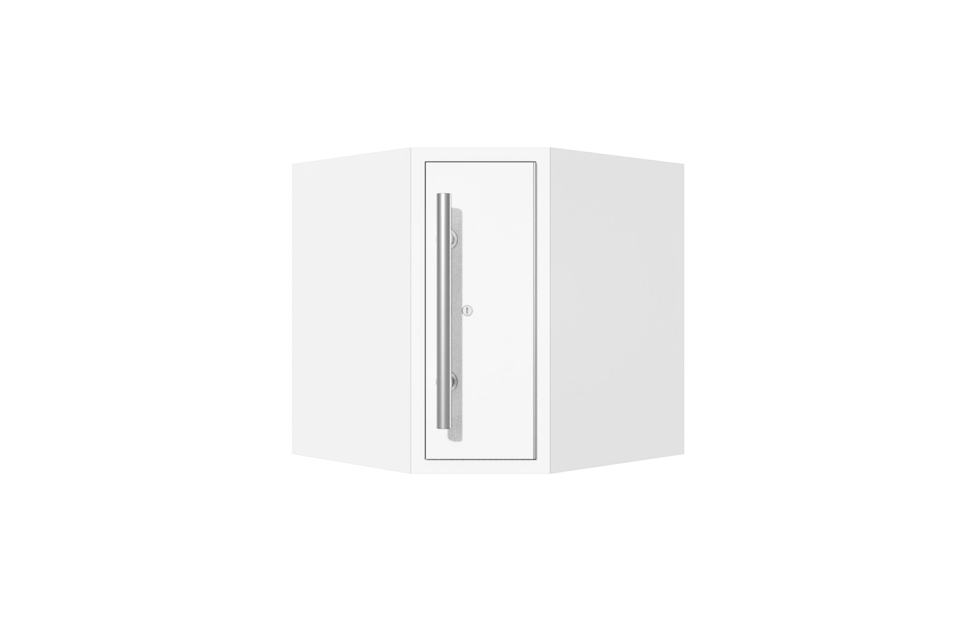 If you're setting up a corner cabinet array, the ProSlat LUX Corner Wall Mount Cabinet is the perfect choice to finalize your setup. This cabinet includes a single door with a piano hinge, known for its robustness. The construction is exceptionally sturdy, and the door opens smoothly, providing easy access to stored items.