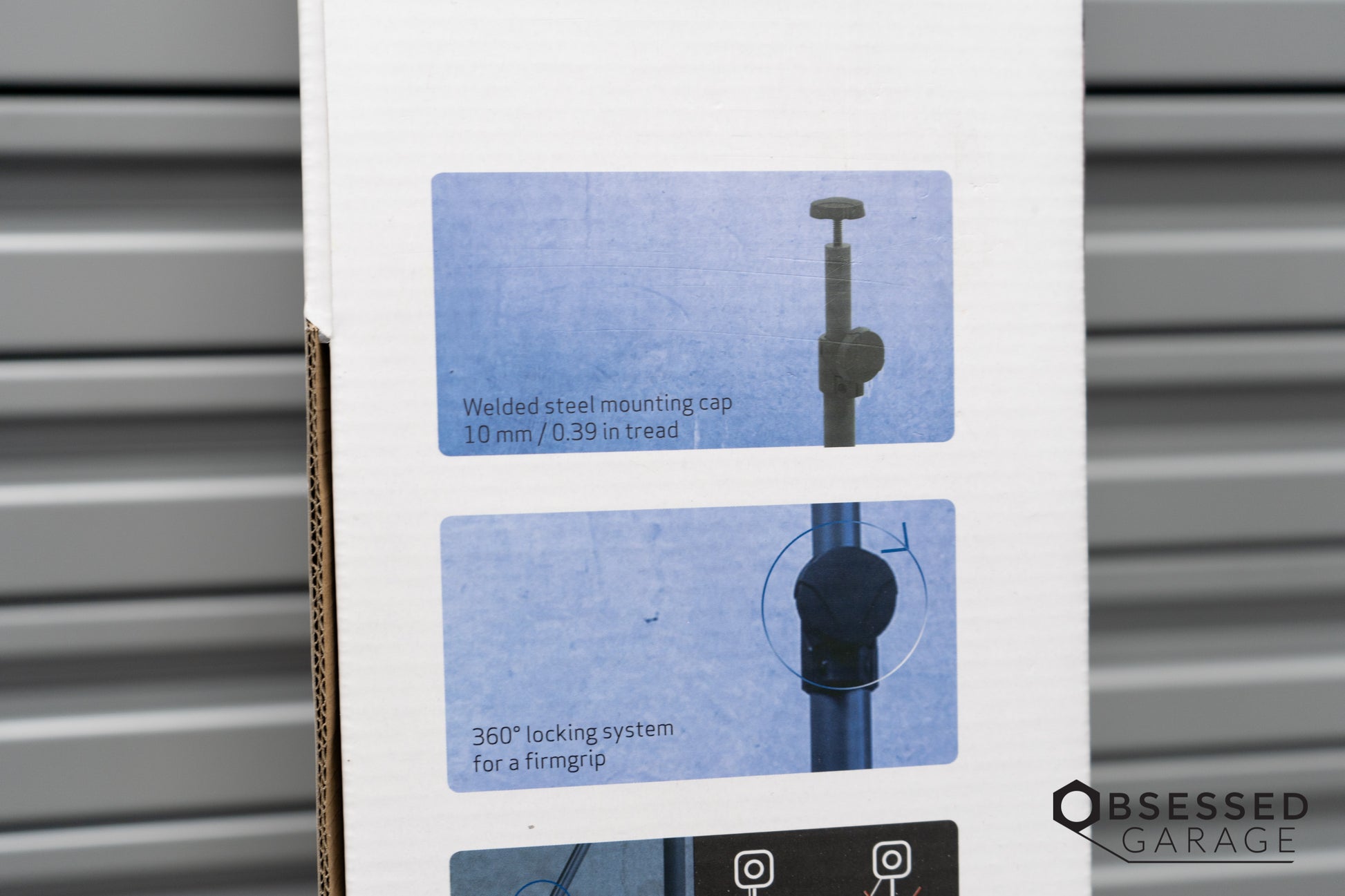 The tripod is made of durable powder-coated steel and a welded steel mounting cap (10 mm thread) ensures the durability of the universal tripod stand. When not in use the tripod is compact with a weight of 6 kg.