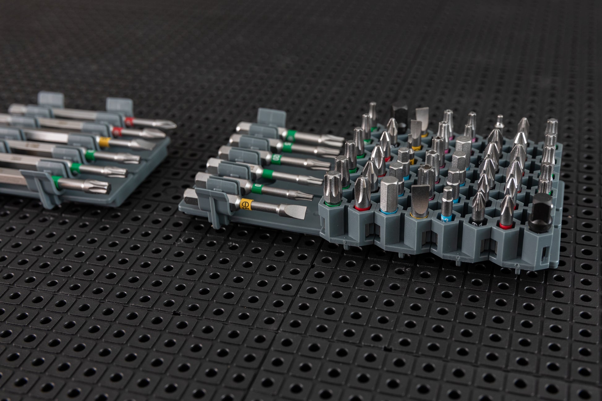 The Tool Grid x Obsessed Garage Bit Holder Set lets you organize all of your miscellaneous bits in one sleek-looking package. Usually, when you buy bits, they come in their own case. Personally, I like having them laid out like this so I can see them all at once. They're cheap so I would grab a few packs so you're ready once you get more bits in.