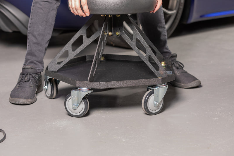 I can already see the comments… “That's a lot for a chair!” Trust me, I thought it was a little crazy to be buying these expensive chairs too until I put mine together and used it. The 4-inch casters are super smooth and equipped with high-quality bearings. You’ll find yourself rolling around your garage/shop floor feeling like you’re skating on ice. The plush leather cushion makes working on this chair very comfortable for long periods of sitting.